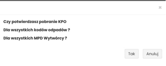 Funkcja pozwala pobrać dowolne KPO — niezależnie od tego, czy jesteś przekazującym, czy odbiorcą odpadu.