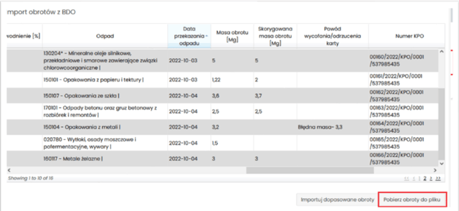 Kliknij „Pobierz obroty z BDO”.