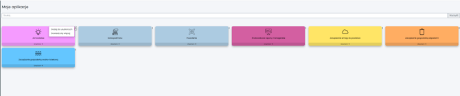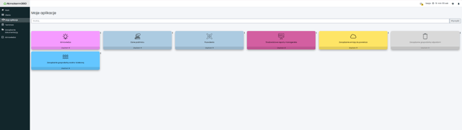 Aby przejść do wszystkich dostępnych usług, wybierz Moje aplikacje z menu po lewej stronie. Kliknij wybrany kafelek, aby otworzyć interesujący Cię moduł.