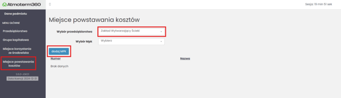 Kliknij przycisk Dodaj MPK.
