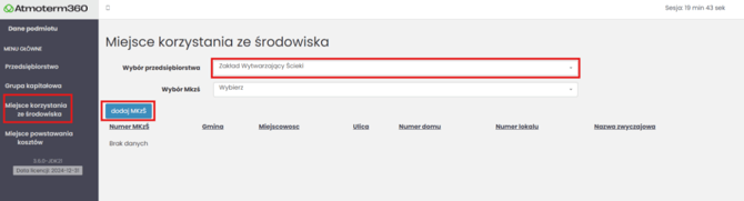 W menu po lewej stronie przejdź do zakładki Miejsca korzystania ze środowiska.