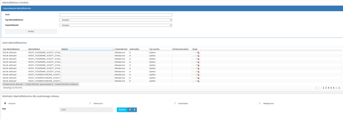 • Częstotliwość – określa częstotliwość danych wykazywanych w arkuszu „identyfikatory” raportu korporacyjnego. Możliwe jest wybranie częstotliwości rocznej, półrocznej, kwartalnej lub miesięcznej. Aby poprawnie wprowadzić wynik obliczeń, należy uzupełnij następujące pola: