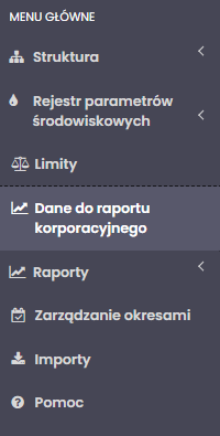 Wybierz zakładkę „Dane do raportu korporacyjnego” w menu bocznym.