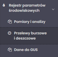 Kliknij w zakładkę Przelewy burzowe i deszczowe w menu po lewej stronie.
