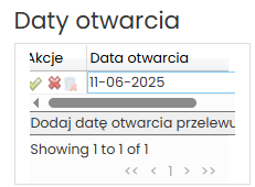 Daty otwarcia przelewu, jeśli miało miejsce jego uruchomienie.