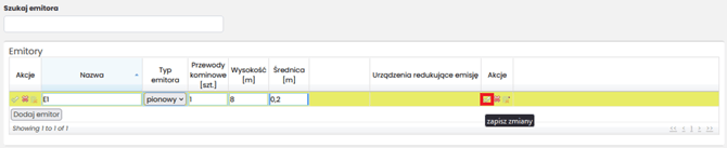 Zapisz dane, klikając ikonę „zapisz zmiany” (✓) w kolumnie „Akcje”.