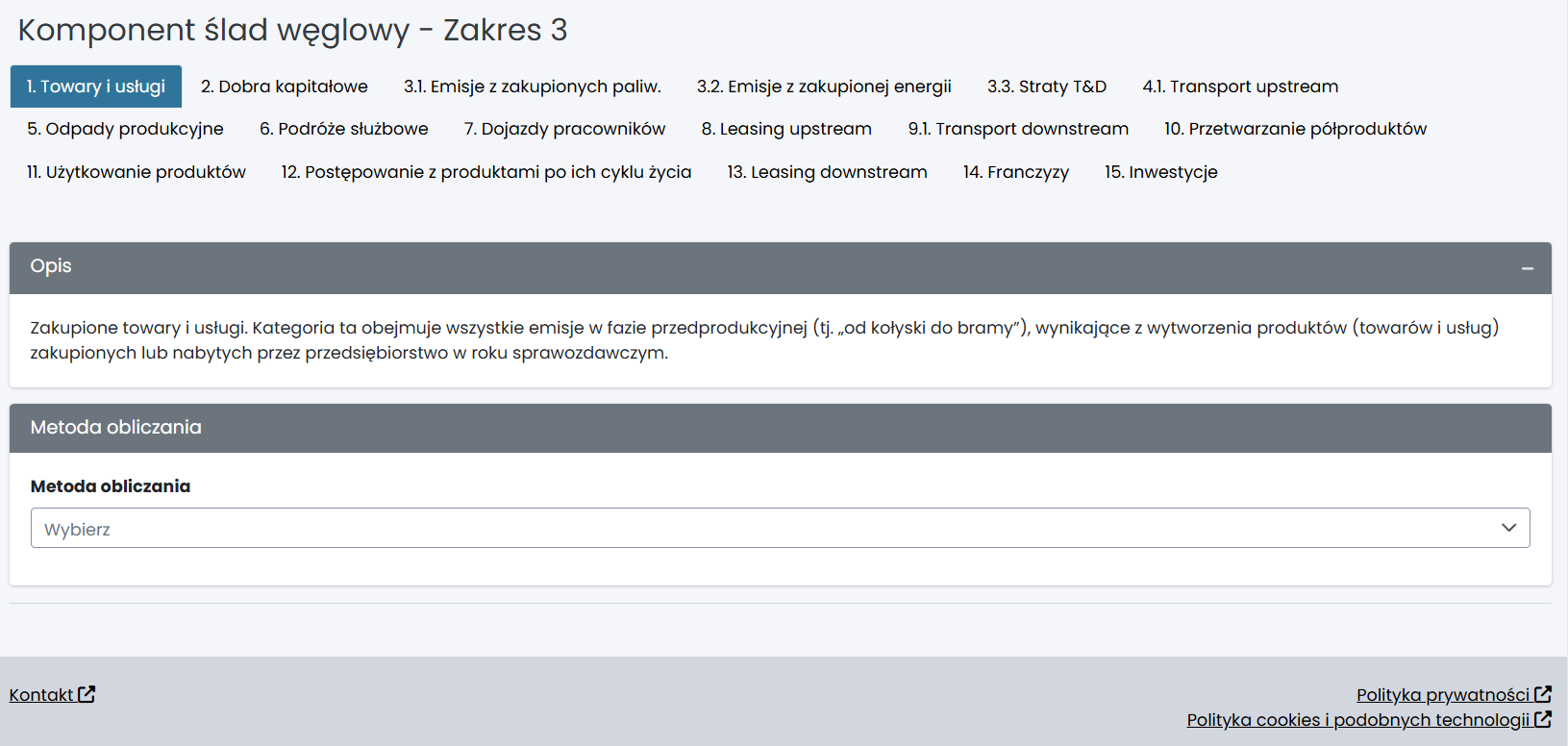 Komponent ślad węglowy - Zakres 3