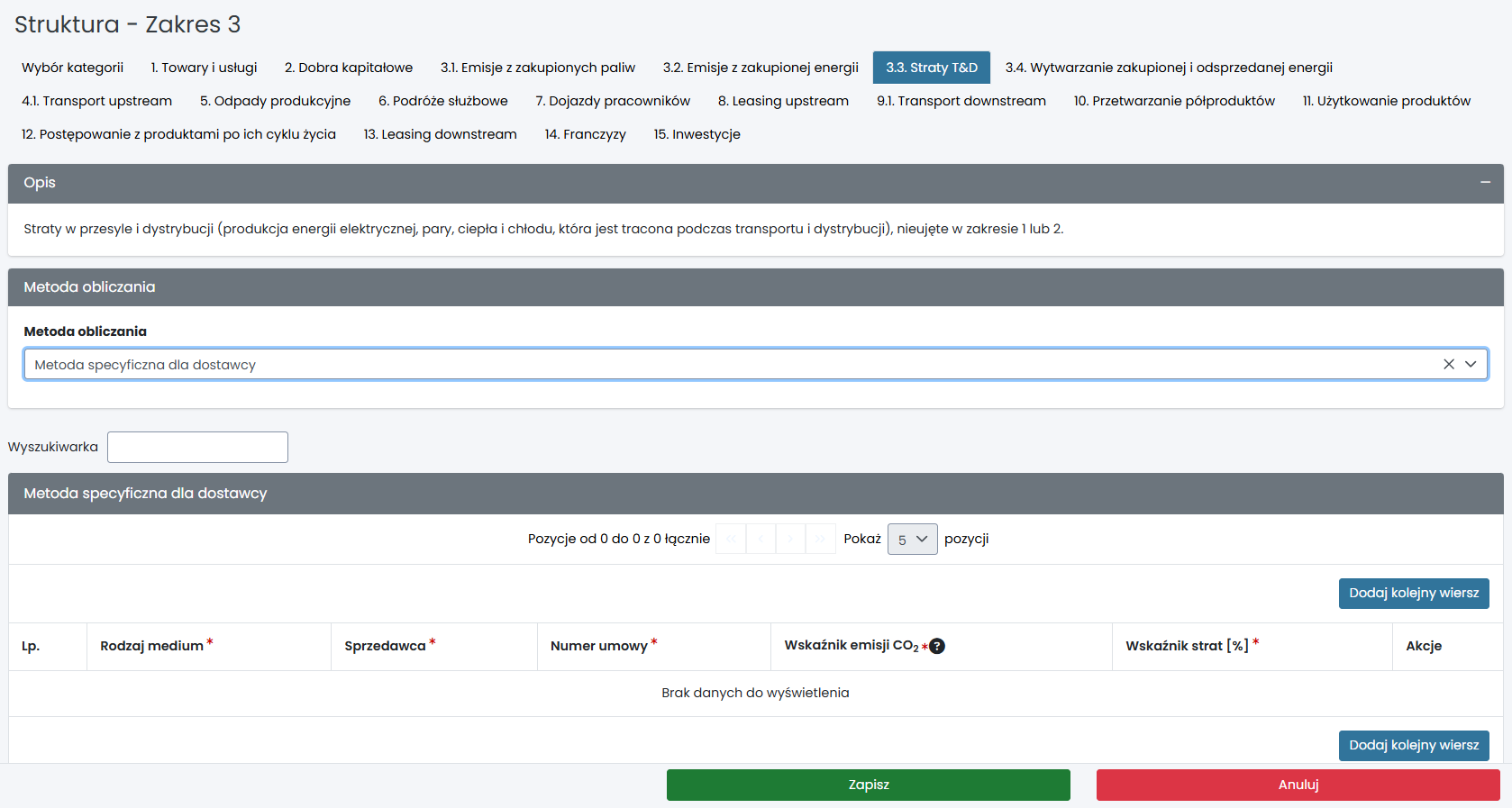 Metoda specyficzna dla dostawcy polega na wykorzystaniu wskaźników emisji i wskaźnika strat przekazanych bezpośrednio przez sprzedawcę.