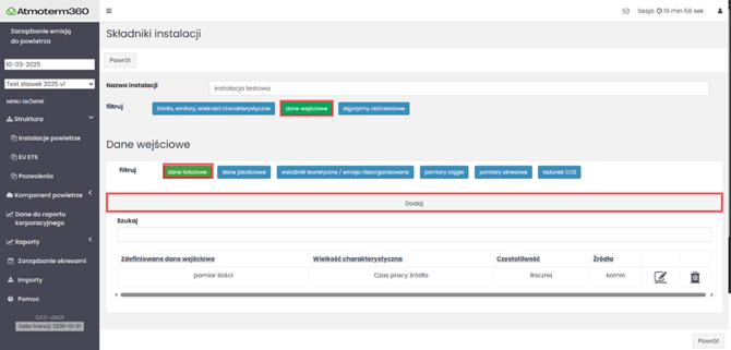 Przejdź do zakładki Dane wejściowe.
