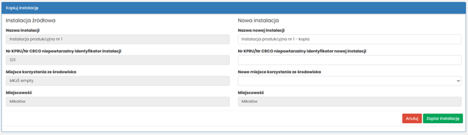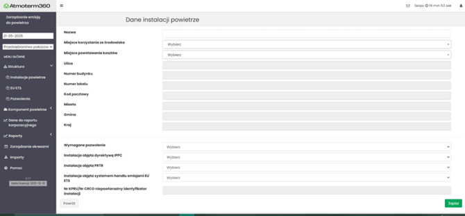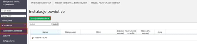 Kliknij „Dodaj nową instalację”, aby przejść do formularza.