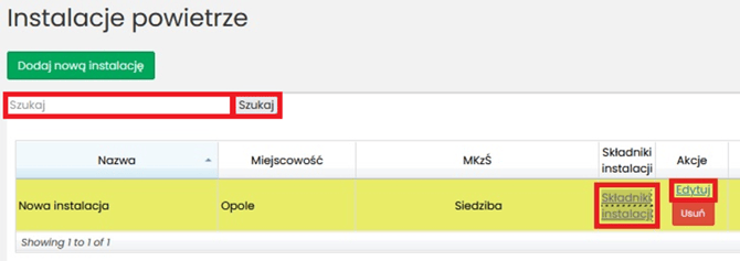 6. Jeśli masz dużo instalacji, skorzystaj z wyszukiwarki - wpisz fragment nazwy i kliknij „Szukaj”.