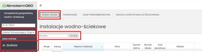 W menu po lewej wybierz Struktura, a następnie Instalacje.