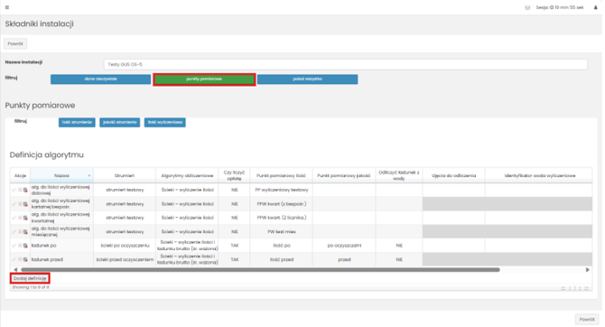 Przejdź do zakładki „Punkty pomiarowe” i w tabeli „Definicja algorytmu” dodaj nowy wiersz.