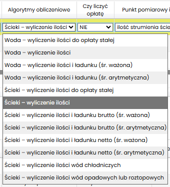 Aby prawidłowo naliczać opłaty za pobór wód lub odprowadzanie ścieków (wraz z ładunkami), połącz wcześniej dodane punkty pomiarowe z odpowiednim algorytmem. Dzięki temu system będzie wiedział, które dane brać pod uwagę przy obliczeniach.