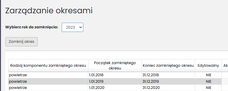 Osoba wyznaczona jako administrator w danym zakładzie może zablokować pozostałym użytkownikom możliwość wprowadzania i edycji danych w wybranym roku kalendarzowym.