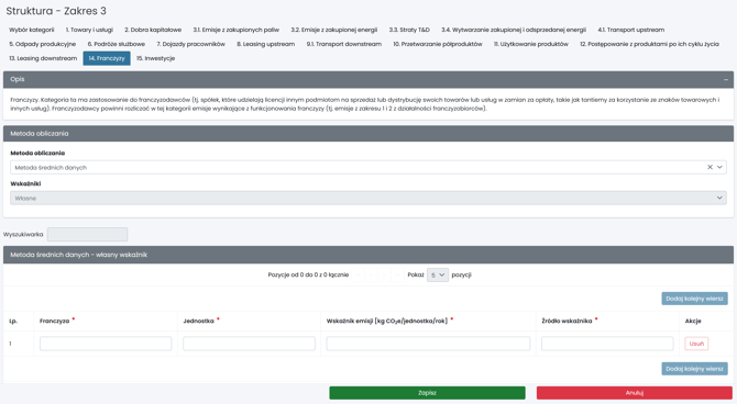 Metoda wykorzystuje dane z obliczonej emisji pochodzącej od franczyzobiorców.