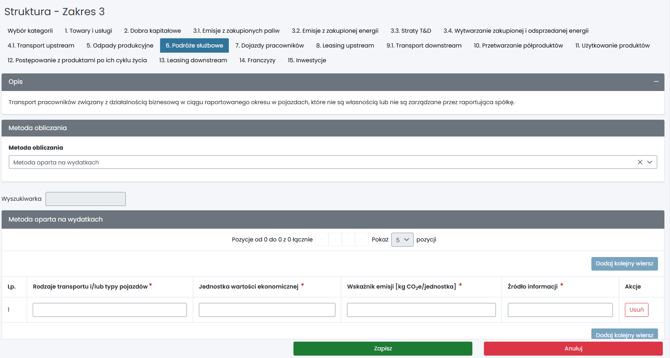 Metoda polega na oszacowaniu emisji na podstawie wartości ekonomicznej zakupionych usług transportowych oraz wskaźników emisji CO₂e odnoszących się do kwoty zakupu.
