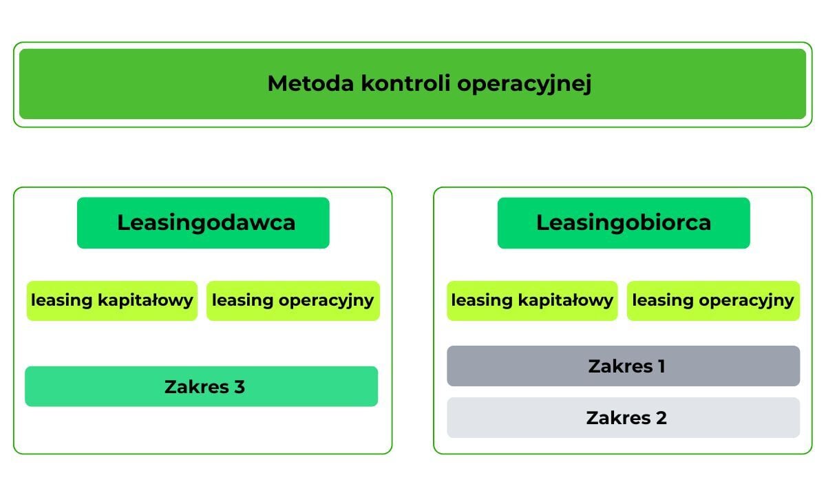 W przypadku, gdy organizacja korzysta z aktywów, takich jak np. samochody służbowe, będąc leasingobiorcą, a jednocześnie stosuje podejście oparte na kontroli operacyjnej, emisje powstające w wyniku eksploatacji tych pojazdów (np. spalania paliw) powinny zostać ujęte w zakresie 1 emisji (Scope 1), niezależnie od tego, czy umowa leasingowa ma charakter operacyjny czy kapitałowy.