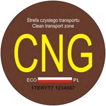 - nalepka do oznaczania pojazdów napędzanych sprężonym gazem ziemnym: