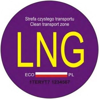 - nalepka do oznaczania pojazdów napędzanych skroplonym gazem ziemnym: