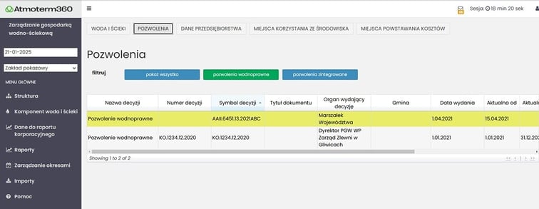 - danych określonych w pozwoleniu wodnoprawnym czy zintegrowanym;