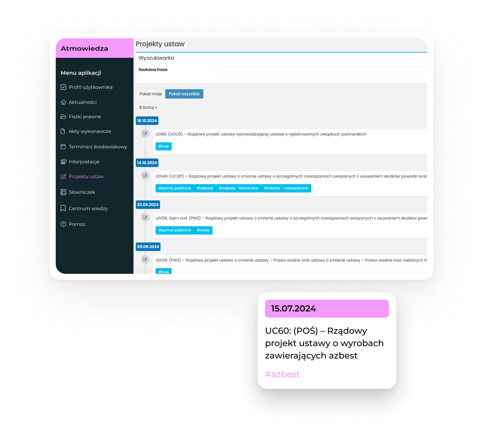Korzystaj z użytecznych opisów w: fiszkach prawnych, terminarzu i projektach ustaw.