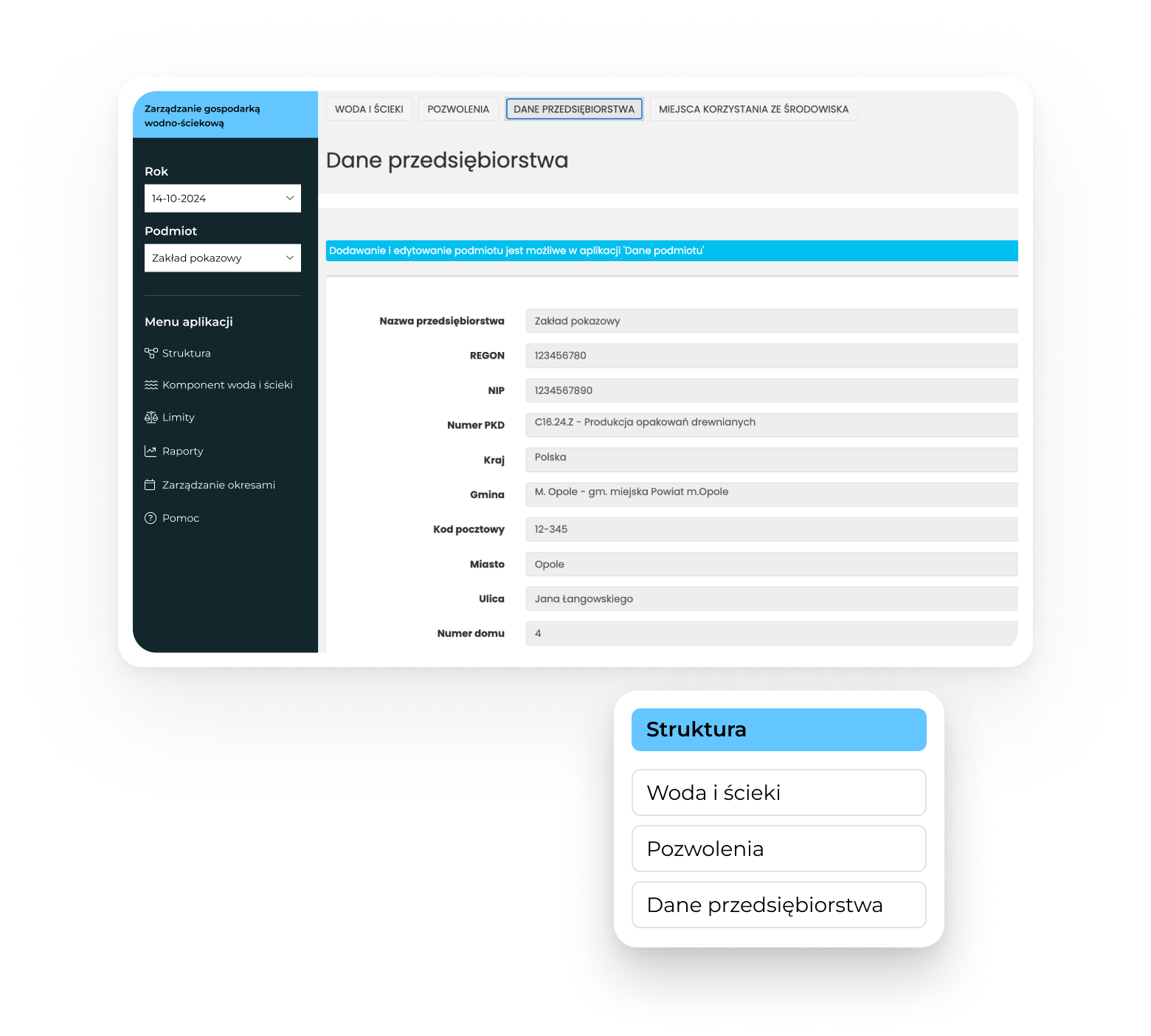 Modyfikuj strukturę Twojego przedsiębiorstwa w aplikacji Zarządzanie gospodarką wodno-ściekową, zgodnie ze zmieniającym się układem instalacji.